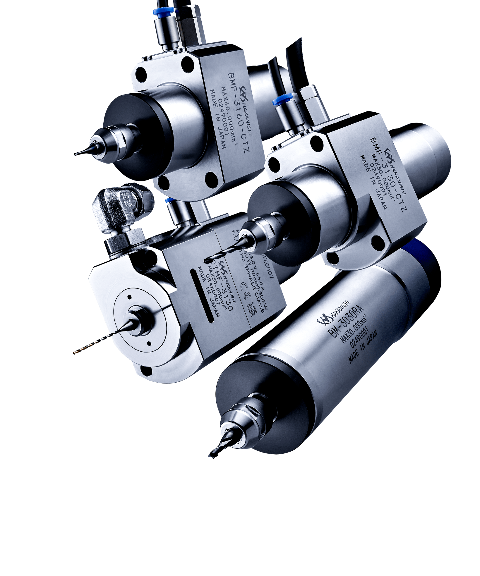 E3000iシリーズは、小型ボディで高トルクと高速回転を両立し、従来課題だったトルク不足を解消。1μm精度で加工品質が向上し、狭小スペースにも容易に搭載可能。高速型とトルク型を選べ、幅広い加工に対応し生産性を高めます。 NGSシリーズは、標準回転工具を置き換えるだけで回転速度を機械指令の4.3倍へ増速でき、加工速度と生産性が向上します。配線不要で簡単に取り付けられ、1μm精度とφ6.35工具対応により高精度加工と汎用性を同時に実現します。