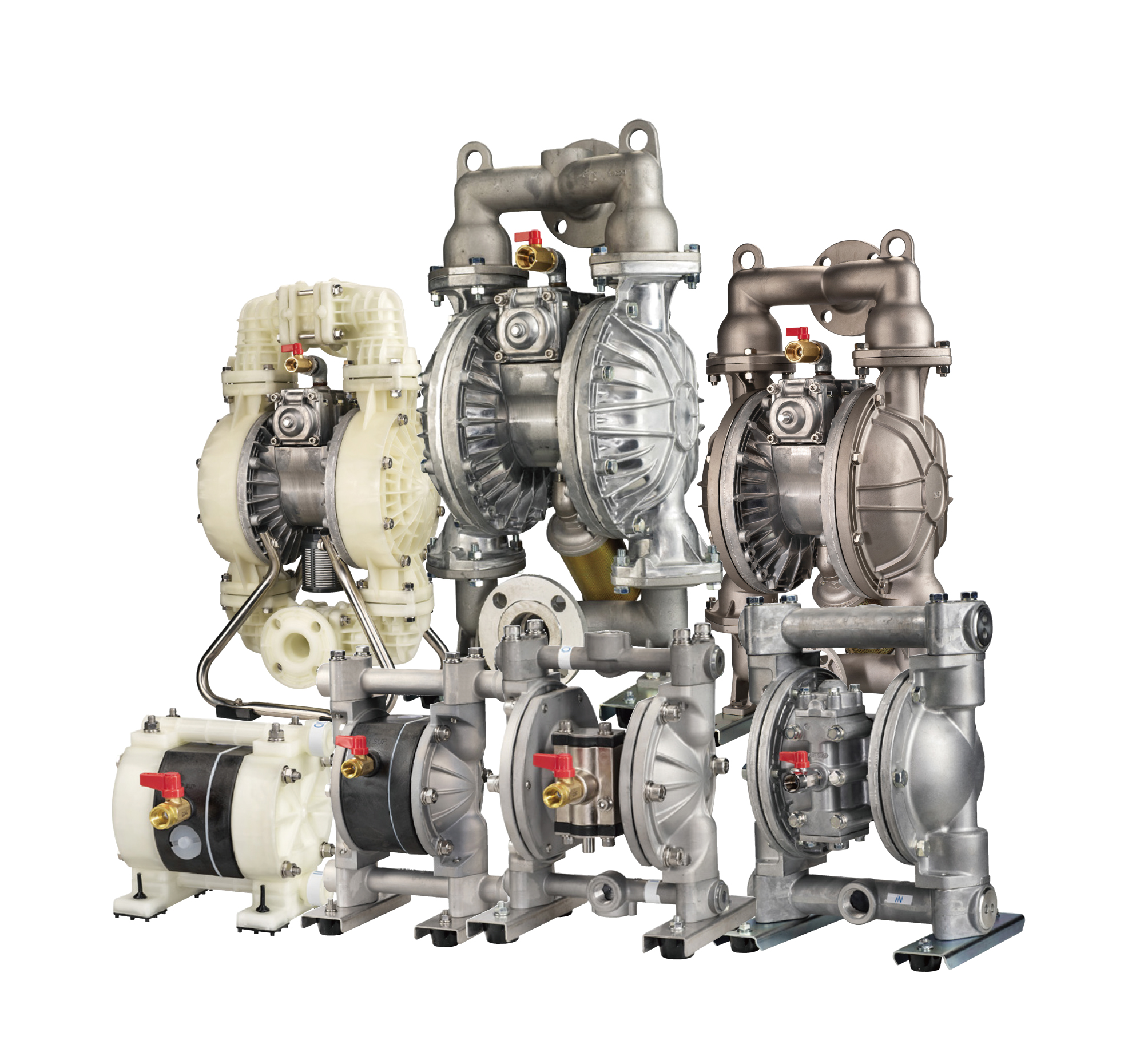 「安全な液体移送のニーズ」に応える、防爆、液漏れしないエア駆動ポンプ。 超小型から大型までサイズ・材質の組み合わせによって150種類以上のモデルをラインアップ。流量や使用液剤に応じて、最適なポンプを選択可能です。