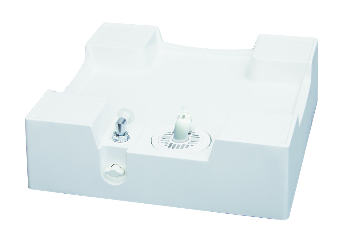 防水パン・台座・給水栓が一体型仕様となっています。 サイズはW640×D640×H193のTPRF640-W3-FN、W740×D640×H193のTPRF740-W3-FNの2種類あります。 色は清潔感のあるニューホワイト色を採用しております。 セット品として2Mの洗濯機用給水ホースと専用の横引トラップが付属されています。