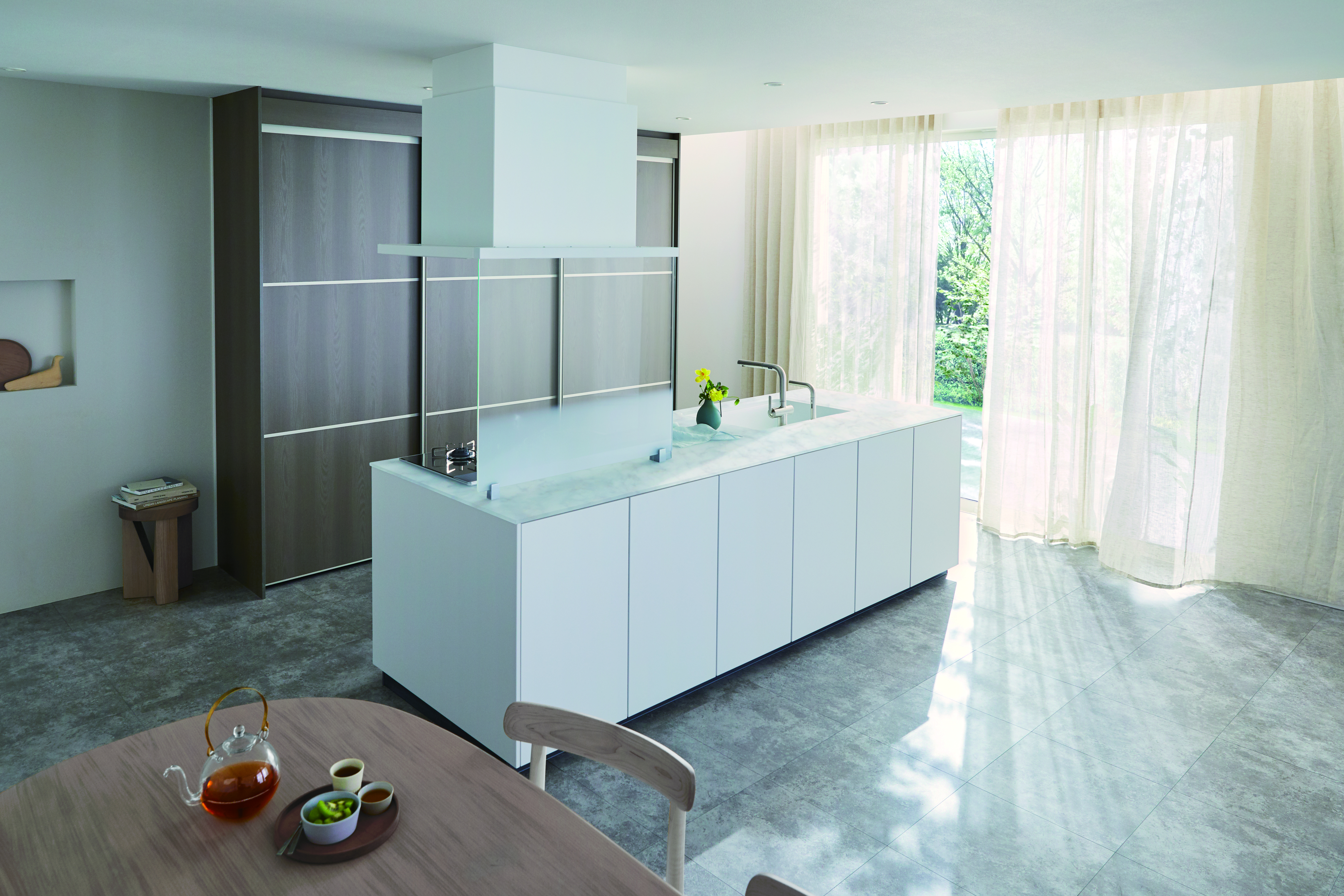暮らしに調和し、お掃除がラクになるキッチンです