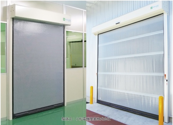 食品製造業の工場の製造ライン、搬入搬出口に設置。また、工場内スタッフの出入口の前室等